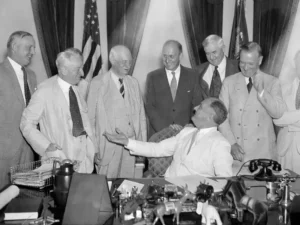 In the wake of the Great Depression, the U.S. government faced intense pressure to respond to the profound economic crisis that had gripped the nation. Under the leadership of President Franklin D. Roosevelt, who took office in March 1933, the government implemented a series of sweeping reforms and policies collectively known as the New Deal. These initiatives aimed to provide immediate relief to the unemployed, to stimulate economic recovery, and to implement lasting reforms to prevent future economic collapses.