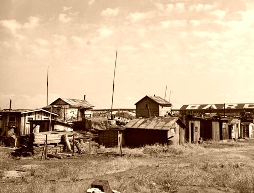 Squatters shacks along the Willamette River. Hooverville, Portland Oregon Arthur Rothstein 1936